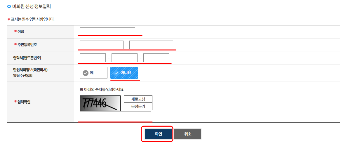 3.개인정보 수집 동의 및 신청자 정보 입력