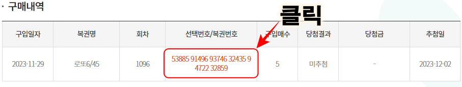 로또 번호를 구매하셨다면 당첨 번호를 확인해야 됩니다. 마이페이지에 들어가셔서 자세히 보기 클릭 다음 선택번호/복권번호 클릭하시면 구매 번호가 나오면 로또 복권 구매완료